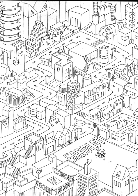 The final product was drawn on Bristol paper, 12"x12" panels. Feel free to read the final book -- it has no color, so you can print it and color it yourself!